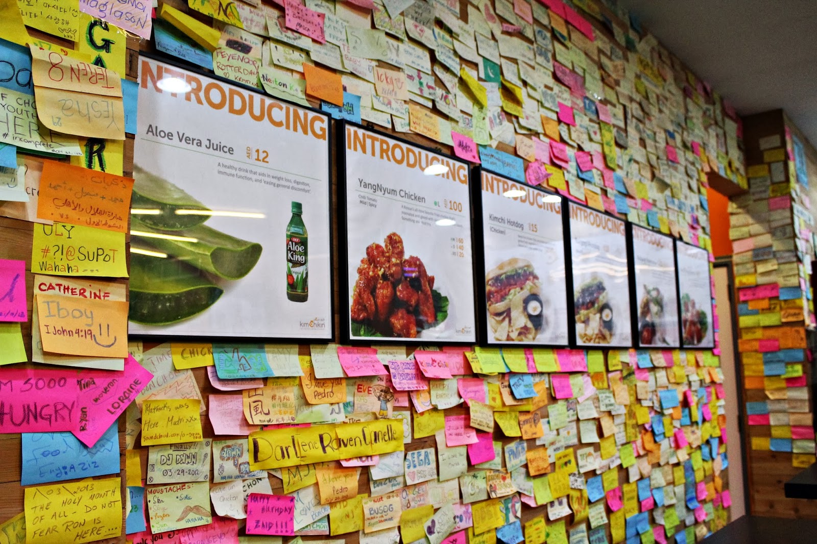 It's not hard to locate because the restaurant is well lit and has colorful "post-it" notes on its walls! YES!-Post-it notes sa dingding mismo ng kainan! This really modern and smart gimik makes the restaurant more interesting lalo na for this generation na mahilig mag-social network and or course, take pictures.